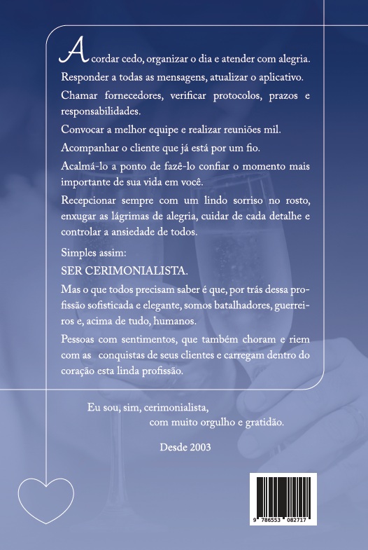 Recepcionar sempre com um lindo sorriso no rosto, enxugar as lágrimas de alegria, cuidar de cada detalhe e controlar a ansiedade de todos.