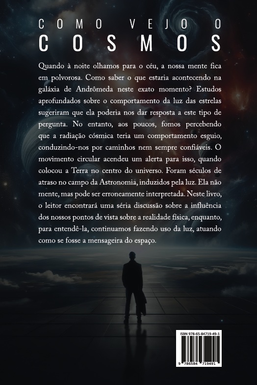 Quando à noite olhamos para o céu, a nossa mente fica em polvorosa. Como saber o que estaria acontecendo na galáxia de Andrômeda neste exato momento? Estudos aprofundados sobre o comportamento da luz das estrelas sugeriram que ela poderia nos dar resposta a este tipo de pergunta. No entanto, aos poucos, fomos percebendo que a radiação cósmica teria um comportamento esguio, conduzindo-nos por caminhos nem sempre confiáveis. O movimento circular acendeu um alerta para isso, quando colocou a Terra no centro do universo. Foram séculos de atraso no campo da Astronomia, induzidos pela luz. Ela não mente, mas pode ser erroneamente interpretada. Neste livro, o leitor encontrará uma séria discussão sobre a influência dos nossos pontos de vista sobre a realidade física, enquanto, para entendê-la, continuamos fazendo uso da luz, atuando como se fosse a mensageira do espaço.