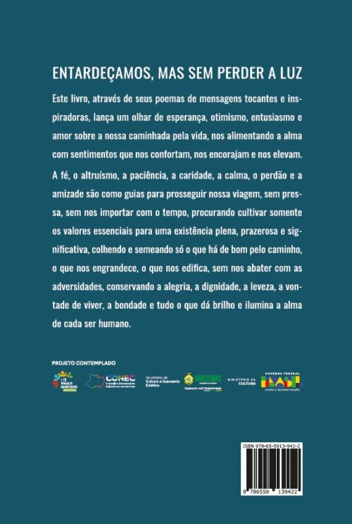 “Este livro, através de seus poemas de mensagens tocantes e inspiradoras, lança um olhar de esperança, otimismo, entusiasmo e amor sobre a nossa caminhada pela vida, nos alimentando a alma com sentimentos que nos confortam, nos encorajam e nos elevam.