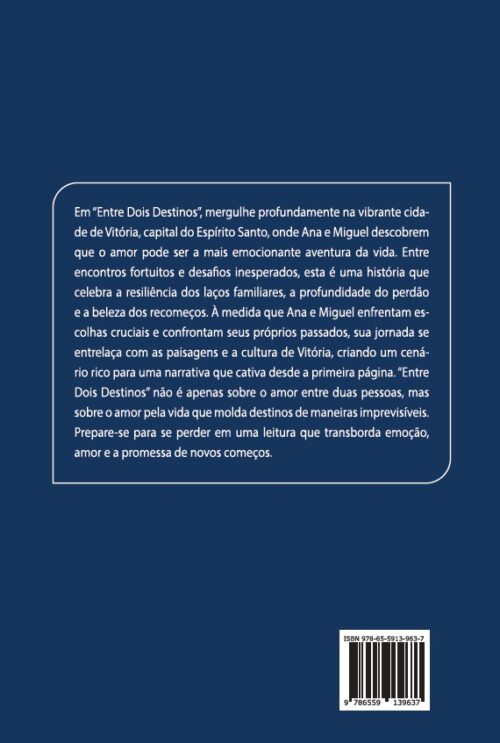 Em “Entre Dois Destinos”, mergulhe profundamente na vibrante cidade de Vitória, capital do Espírito Santo, onde Ana e Miguel descobrem que o amor pode ser a mais emocionante aventura da vida. Entre encontros fortuitos e desafios inesperados, esta é uma história que celebra a resiliência dos laços familiares, a profundidade do perdão e a beleza dos recomeços.