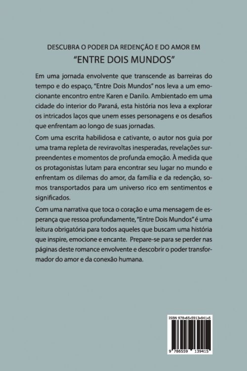 Em uma jornada envolvente que transcende as barreiras do tempo e do espaço, “Entre Dois Mundos” nos leva a um emocionante encontro entre Karen e Danilo. Ambientado em uma cidade do interior do Paraná, esta história nos leva a explorar os intricados laços que unem esses personagens e os desafios que enfrentam ao longo de suas jornadas.