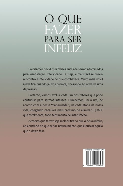 Portanto, vamos excluir cada um dos fatores que pode contribuir para sermos infelizes. Eliminemos um a um, de acordo com a nossa “capacidade”, de cada etapa da nossa vida, chegando cada vez mais próximo de eliminar, QUASE que totalmente, todo sentimento de insatisfação.