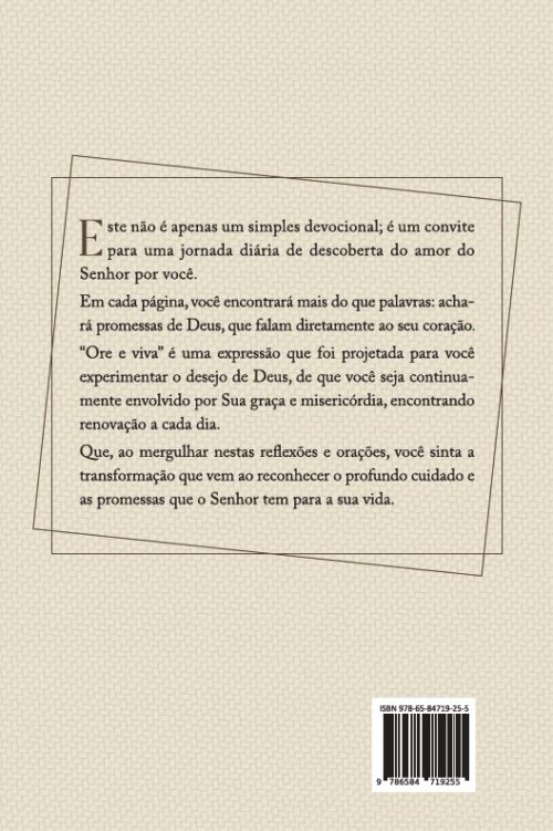 “Ore e viva” é uma expressão que foi projetada para você experimentar o desejo de Deus, de que você seja continuamente envolvido por Sua graça e misericórdia, encontrando renovação a cada dia.