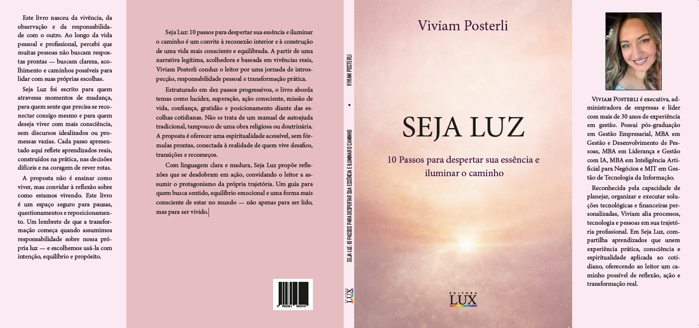 Seja Luz: 10 passos para despertar sua essência e iluminar o caminho é um convite à reconexão interior e à construção de uma vida mais consciente e equilibrada. A partir de uma narrativa legítima, acolhedora e baseada em vivências reais, Viviam Posterli conduz o leitor por uma jornada de introspecção, responsabilidade pessoal e transformação prática.