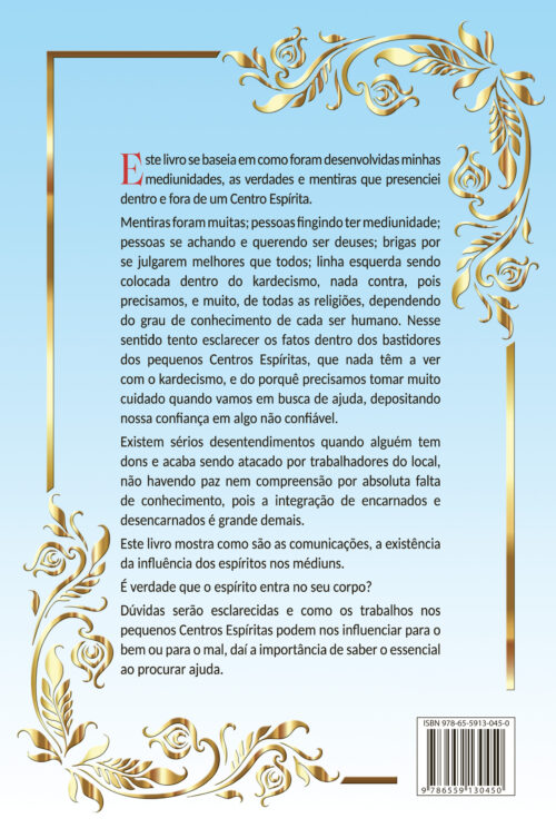 Este livro se baseia em como foram desenvolvidas minhas mediunidades, as verdades e mentiras que presenciei dentro e fora de um Centro Espírita.