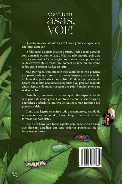 Este é um livro para todos aqueles com deficiência ou não, que desejam acreditar em seus próprios potenciais, de se transformar e voar.